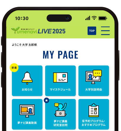 「夢ナビ講義動画」の視聴、プログラムの予約・参加はすべてマイページから!